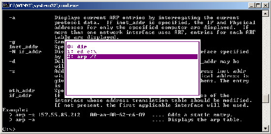 F7: Displays a menu with the command line history