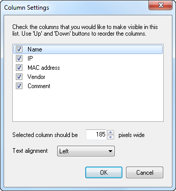 You can use this dialog box to customize the order and appearance of the list with scan results.