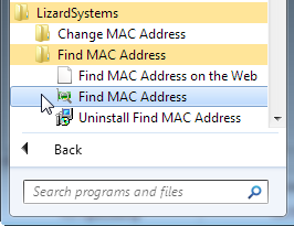 You can start Find MAC Address either from the Start menu