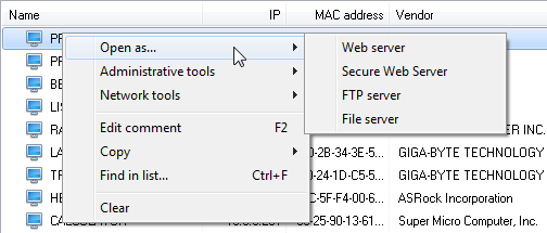 The following menu will appear if you click on the item in the list of scan results.