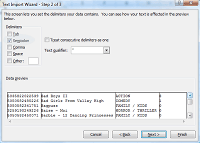 Click ‘Next’ and select your delimiting character. In this case, it’s a semi-colon ‘;’