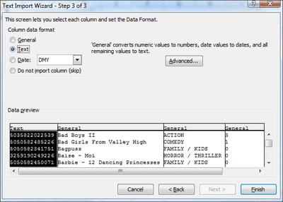 If you wish to shape your data, you can enter field types here. For example, I want the ‘Barcode’ field to be rendered as Text as it may contain leading zeros or be summarised by Excel if it’s treated as a number.