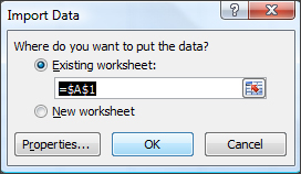Next, select your existing worksheet and press OK to import your data.