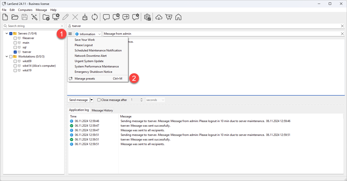 LanSend’s Message Presets feature allows you to save, edit, and quickly access frequently used messages. Here’s how to manage your presets effectively: