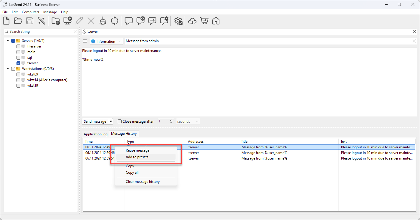 Create Presets from History: Right-click on a past message and select the option to add it as a preset. This saves the message for future use, making repetitive communication faster and easier.