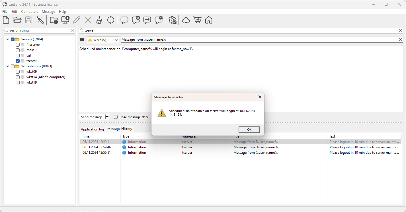 Using variables in LanSend messages allows you to personalize and automate your communication. With variables, you can dynamically insert information such as the computer name, user name, or the current time, making each message more relevant to the recipient.