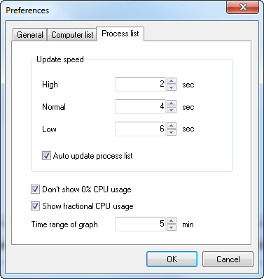 You can specify the process list preferences on this tab.