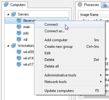 The Computer List panel shows the list of computers in the form of a tree where you can see computers and computer groups. Computer groups are used to group computers not only by their domain names, but also logically. You can create any number of groups and computers. It is possible to change the properties of whole computer groups. The drag-n-drop technology is supported.