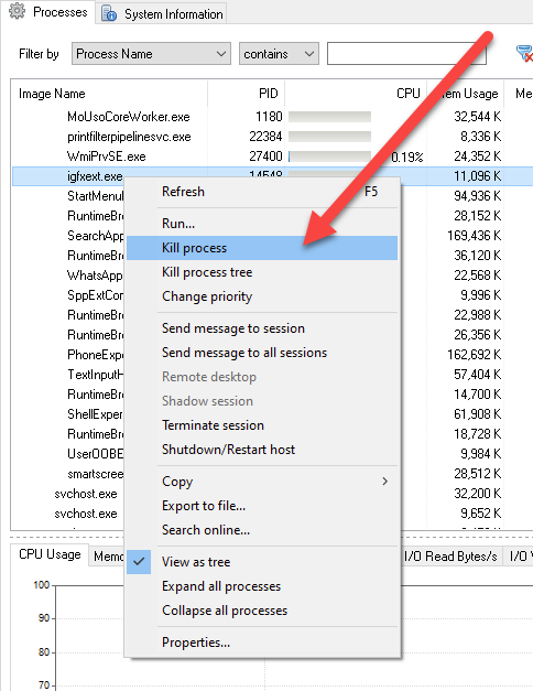 2. Terminate the process: Right-click on the selected process and choose the "Kill Process" option from the context menu. If prompted to confirm the action, click "Yes" to proceed.