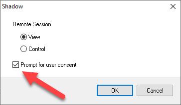 or check Prompt for user consent setting on Shadow window