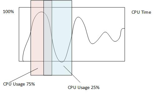 CPU usage is average value and may be different in different software, because it depends on the length of time of measurement values as shown in the picture