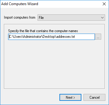 Text file must be plain text file with one IP address or computer name per line.