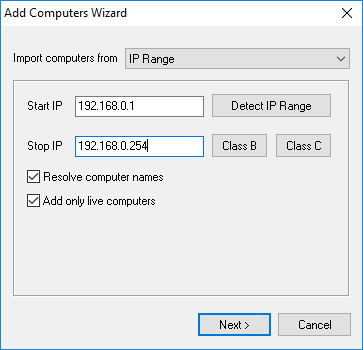 You may scan your local network in specified IP address range and add them to the computer list.