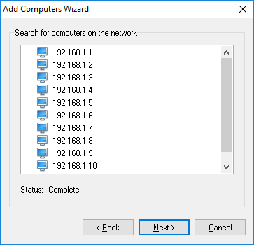 You will see the list of found computers after the scanning process is over. To change the search parameters, click the Back button. If the results are okay, move to the next page by clicking the Next button.