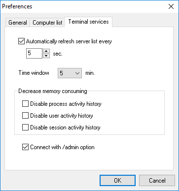 You can specify the monitoring terminal services preferences on this tab.