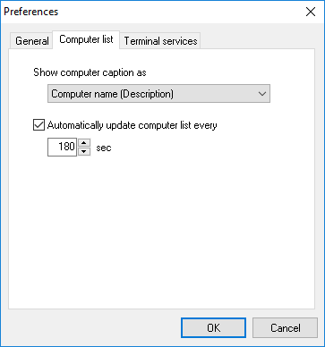 You can specify the computer list preferences on this tab.