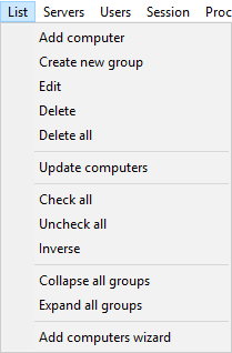 Inverse – inverts all checks in computer list to opposite ones, all checked computers will be unchecked and all unchecked computers will be checked. Then monitoring list will be cleared and checked computers will be added.