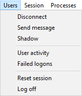 This menu provides functions for managing users connected to servers.