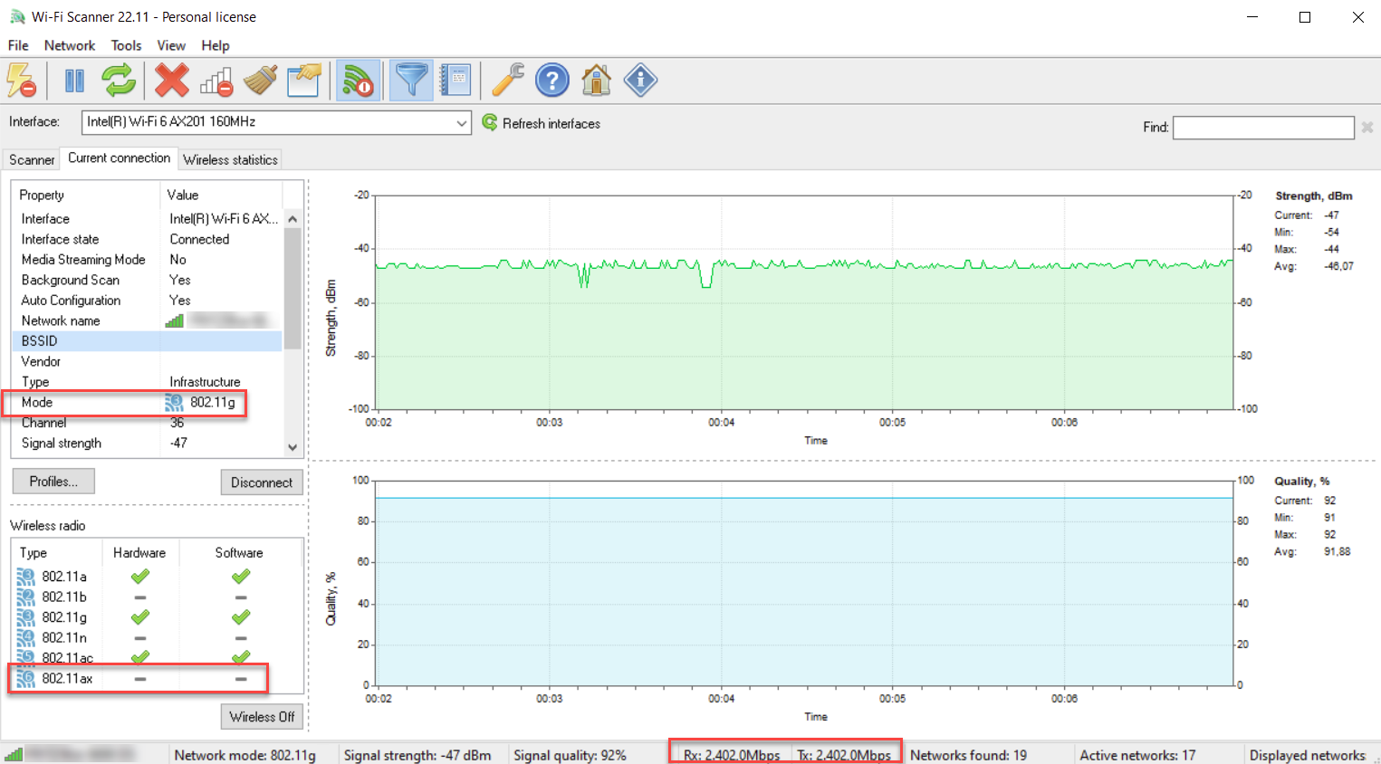 Some Wi-Fi Scanner users encounter an issue where the software shows an outdated Wi-Fi standard (e.g., 802.11g) instead of the current one (e.g., 802.11ax, also known as Wi-Fi 6). This article explains the cause of the problem and suggests solutions.